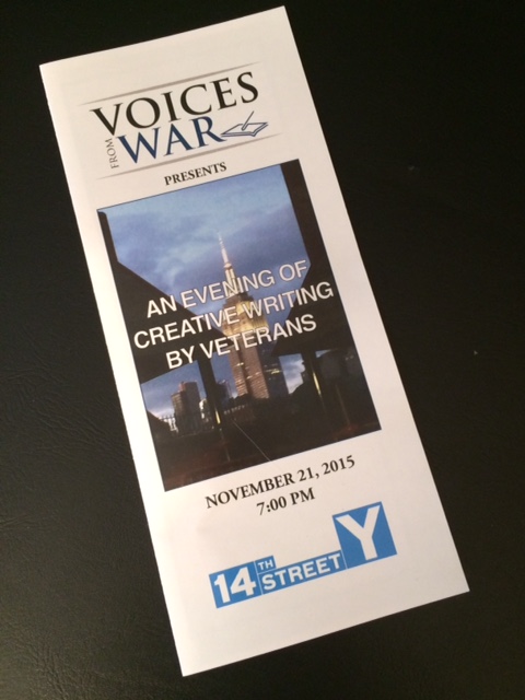 A huge thank you to our magnificent readers — for the polished words they shared and for the work they are still doing: the sentences, experiences, emotions, and phrases still finding their home on paper. We know we are not alone in looking forward to future opportunities to bring Voices From War veterans and writers to more audiences, whether in the same room, or miles apart and brought closer through their stories conveyed on the page.      Flip-side_Program__11-21-15_VfW_EVENT           Interior_Program__11-21-15_VfW_EVENT