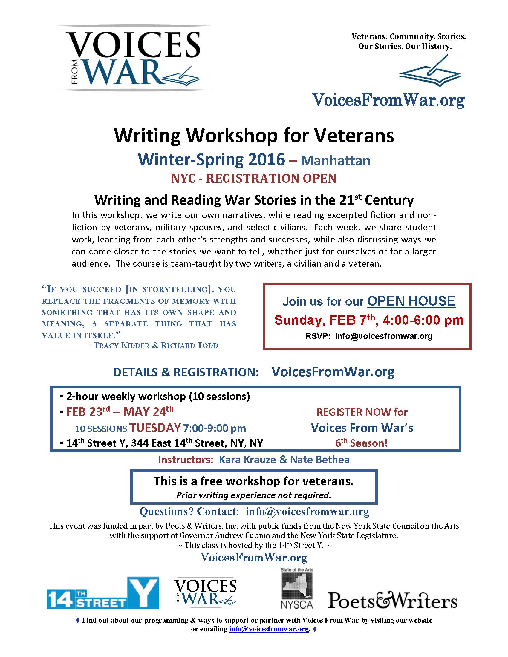 - If you missed VOICES FROM WAR leader and co-instructor NATE BETHEA‘s recent Op-Ed in the New York Times, be sure to check it out now. Well reasoned, thoughtful, emotionally powerful, and fantastically written, “The Truth About PTSD” is a Don’t Miss for veterans and civilians, whether familiar with experiences of post-traumatic stress (PTSD) or new to its effects.