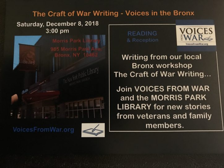 EC32379B-D045-401F-BD9C-DEAF74F232B7 Published on December 8, 2018 in Don’t Miss – This SATURDAY! – “The Craft of War Writing – Voices in the Bronx”Full resolution (4032 × 3024) ← Previous Next →