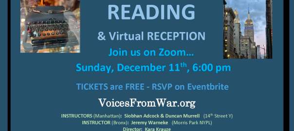 Voices From War invites you to join us for our WINTER SHOWCASE, a Reading and Virtual Reception featuring work from our 2022 workshops.