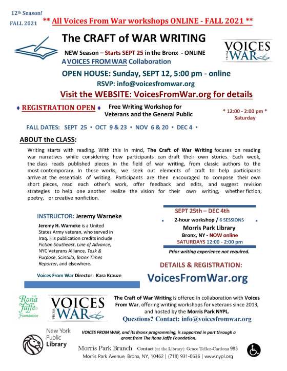 craft_of_war_writing_vfw_bronx_online_fall_2021__flyer-1 Published on September 20, 2021 in HomeFull resolution (1820 × 2354) ← Previous Next →